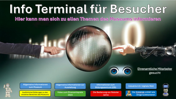 2024 November Einführung eines neuen Kommunikationssystem im Industriemuseums mit der Option einer Führung durch einen Roboter und zusätzlicher Möglichkeiten der Information an einem Infopunkt mit Bildschirm.